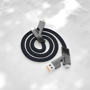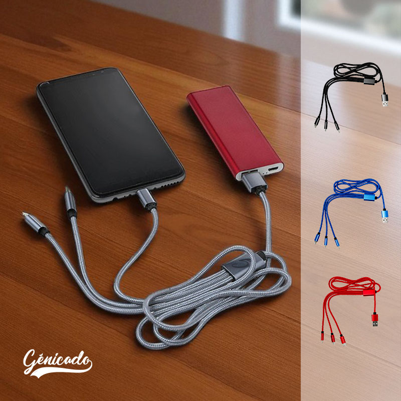 C’est un câble de charge polyvalent. Il comporte plusieurs connectiques à une seule extrémité. Il est pratique pour les bureaux équipés de divers appareils ou en déplacement.