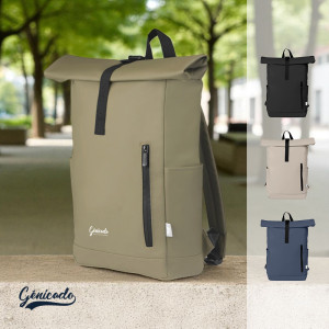 Ce sac roll top est imperméable et fabriqué avec des matériaux recyclés. Il est ultra pratique : il permet d’y ranger un ordinateur. Ses autres poches facilitent le rangement d’effets personnels et ce en toute sécurité, même quand il pleut !