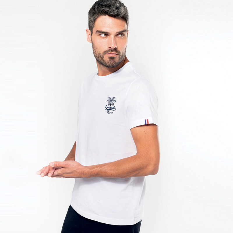 Ce t-shirt bio Made in France, labellisé Origine France Garantie est tissé, coupé, cousu et personnalisé en France, en circuit court. Un bel exemple de produit local et responsable !