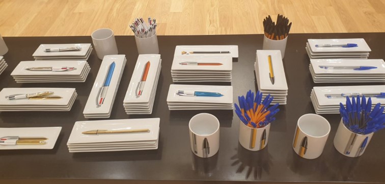 Le saviez-vous ? Le stylo 4 couleurs a aussi intégré la pop culture, par exemple il est le héros d’une BD publiée en 2014 par le dessinateur Blaise Guinin. Ou la céramiste Catherine Courty-Truelle, quant à elle, a créé des vide-poches à l’effigie ce célèbre stylo, se vendant au Bon Marché à Paris.